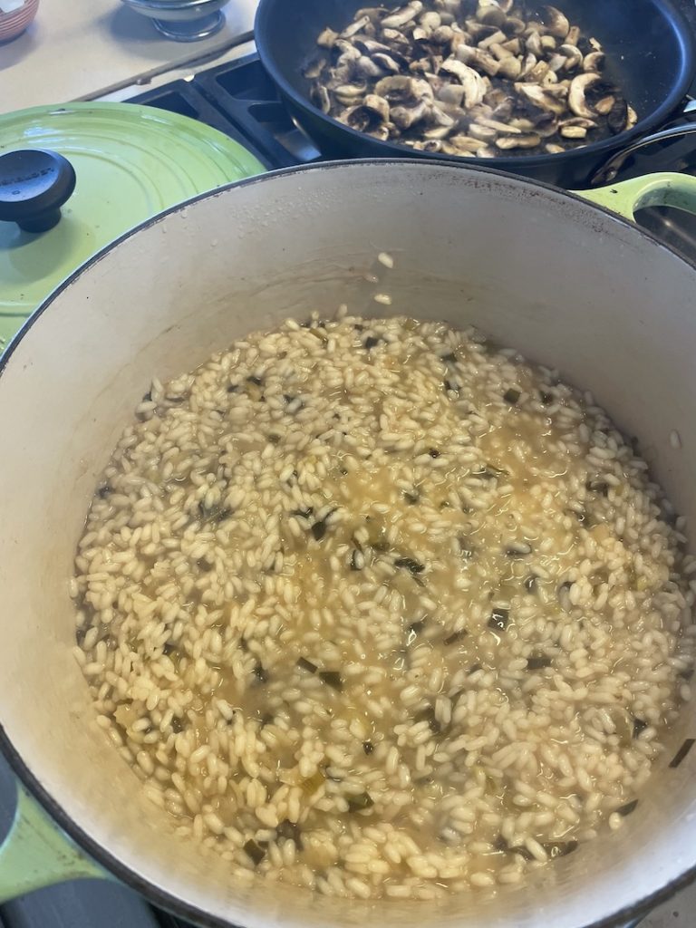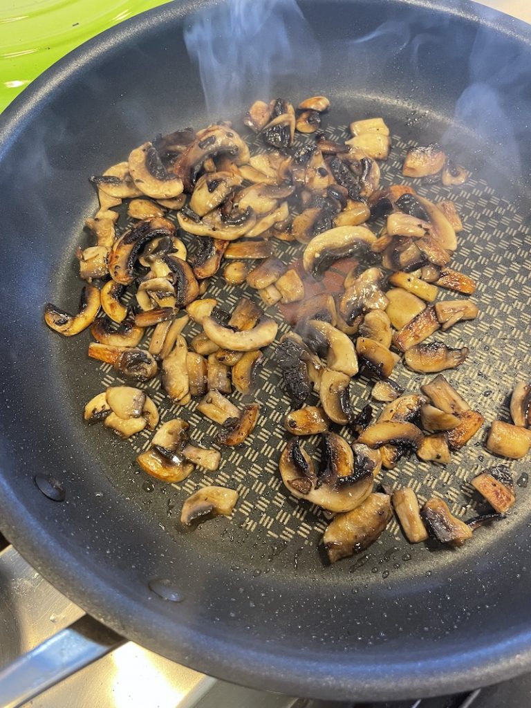 While you are adding the stock to the arborio rice and waiting for it to be absorbed you can get on with the mushrooms