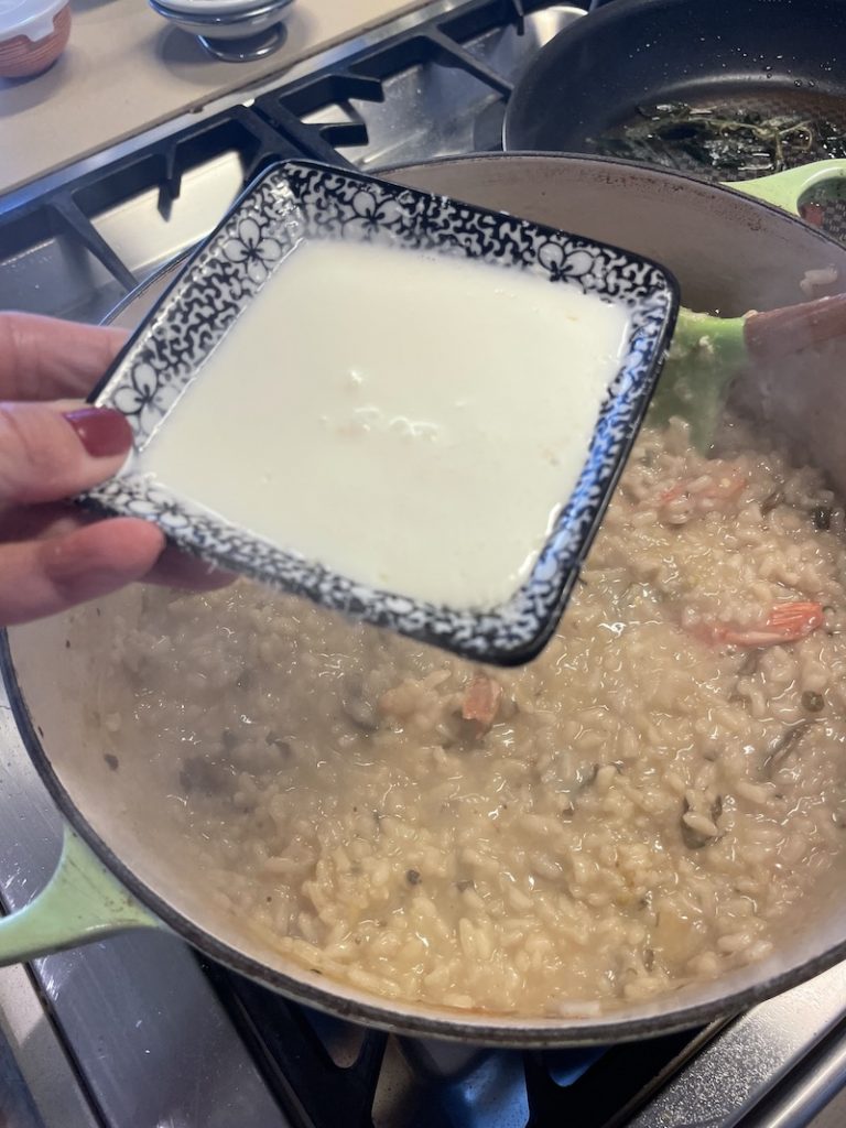 Add cream stir into risotto