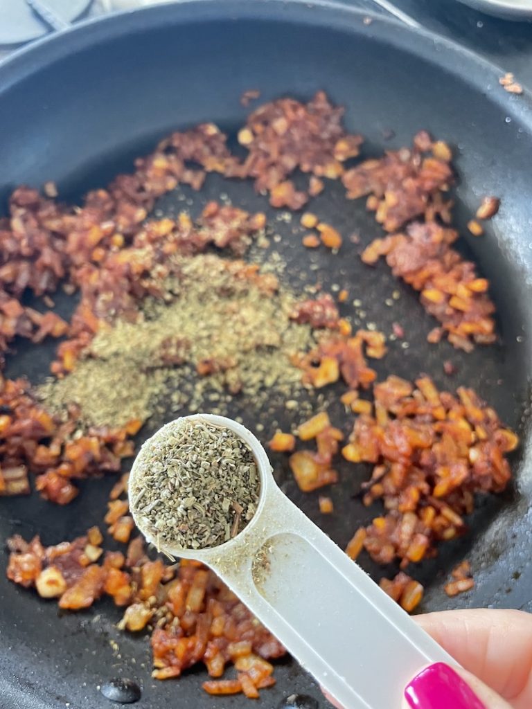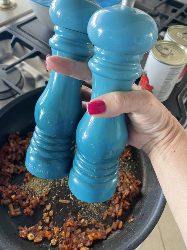 Turn the meatballs and repeat on the underside. This step is probably the most important step in building flavour in this dish. If you miss this step your meatballs will just be grey and dull and lacking that added umph of flavour.