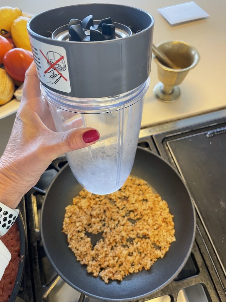 Blits the sourdour or any other bread of choice in a nutribullet until fine bread crumbs. I dry fry my breadcrumbs to get a toasty flavour