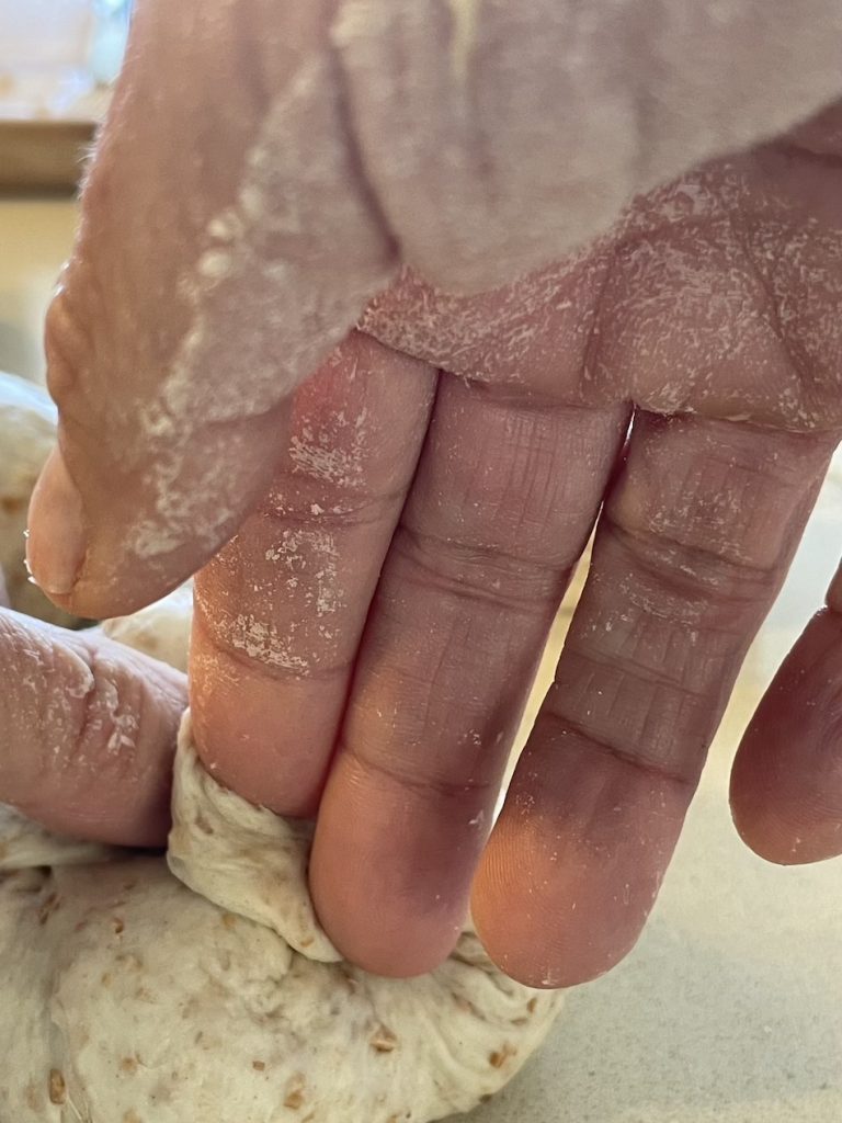 Roll into a tight ball. Place in oiled bowl, cover with cling wrap and leave in a warm place until doubles in size. This depends on the weather so summer it’s quicker than winter. 1-2 hours