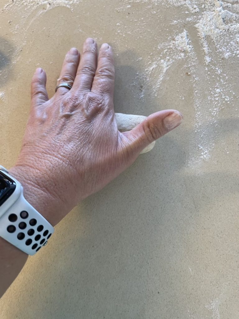 The back and forth rolling action creates the shape. Use two hands, start in the centre and gently move hands outward to stretch the dough. Very difficult to show you while I'm taking the photo at the same time. Gosh I really do need to get my camera set up sorted