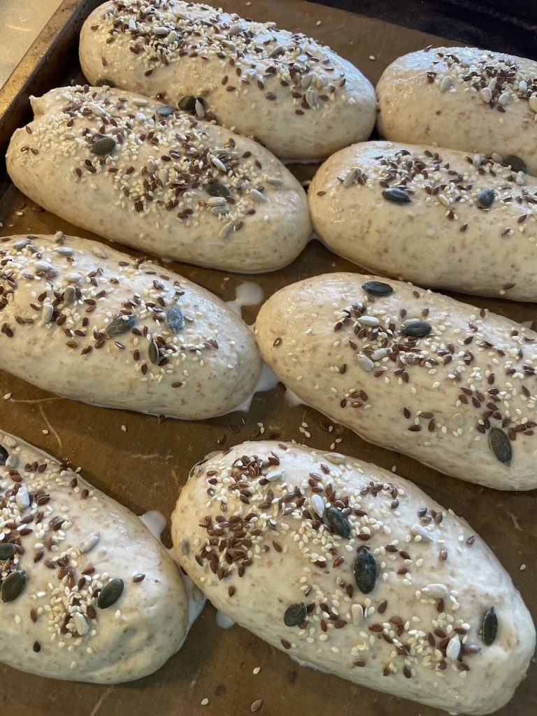 Oven should go on about 30 min before proofing is complete to 200°C.Brush with milk and sprinkle with seeds of your choice, here I've used miracle seed mix Bake for 15 min at 200ºC Make sure you co-ordintate the boerewors cooking with the time it takes the rolls to be ready.